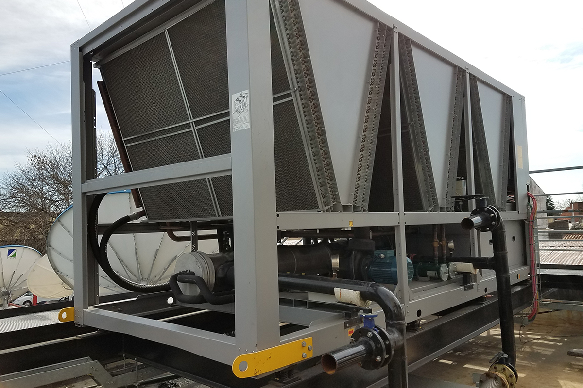 El objeto del proyecto era ordenar el sistema de generación de agua fría de forma de unificar en un solo punto y ampliar la capacidad de los sistemas.